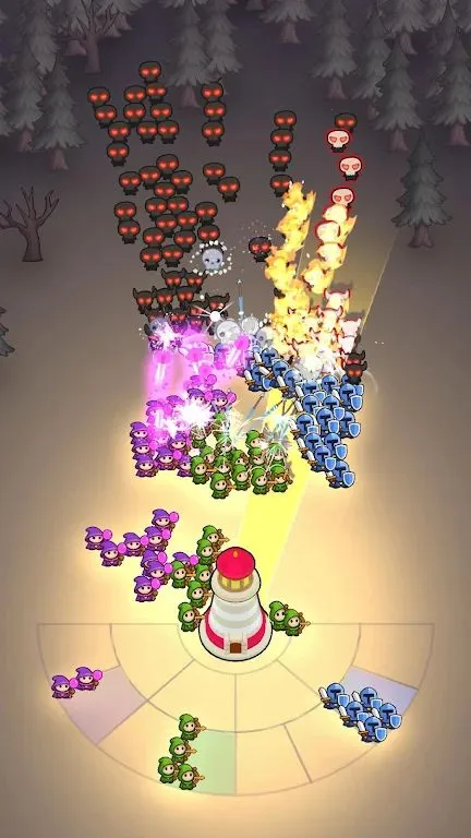 2. 光照机制:灯塔光束在战场旋转,光照范围内建筑运行快,单位变强,敌人变弱,光照区分安全与危险区域。