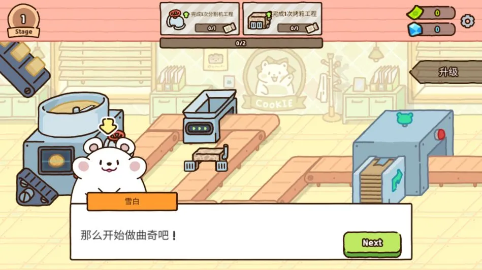 2. 工厂模拟系统细致入微,从原料搅拌到成品包装全程可视化,完整展现点心生产线运作流程。