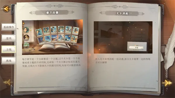 3.主线模式中,每个章节以一个故事主题展开,有12个关卡且无时间限制,新手可借此熟悉玩法。通关要消耗“灵感”,优先推进主线能解锁更多故事与碎片类型,积累基础操作经验。