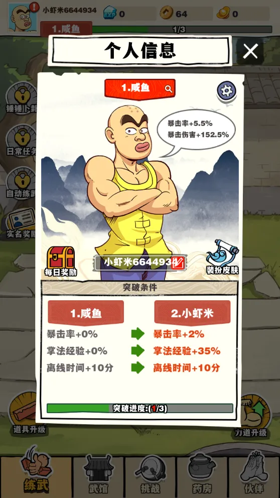 1. 不断突破自我:玩家要持续练习功夫,突破极限,从打破木板到挑战更硬材料与复杂条件,全面提升手速、反应能力和战略规划。