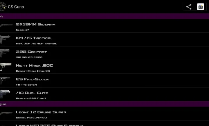 CS枪支安卓版可查看CS内枪支道具,其换弹音效源自起源。能让玩家全面了解各类枪支,感受原汁原味的换弹音效,为CS爱好者带来熟悉又特别的体验。