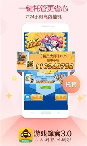 游戏蜂窝是款超棒的手游辅助神器!它能解决咱玩游戏时的不少难题。有强大的辅助功能,支持全自动运行游戏,还能管理时间加速,轻松掌控游戏节奏。一键启动超方便,自动匹配手机里的游戏,简化操作直接开玩。这里汇聚海量手游辅助资源,各种热门游戏都有对应的脚本,就像有了外挂一样好用。遇到游戏难题,去社区找大神分享心得就能解决。而且它能提供游戏托管、离线挂机升级等功能,托管不耗流量。64 位版运行更畅快,加载辅助更快。新人有三重礼,还能免费送 VIP 体验卡等。使用方法也不难,先注册登陆,然后点击或搜索游戏进专区,选工具运行,设置参数保存,进游戏界面点运行就开始挂机啦,能让咱轻松享受游戏乐趣,强烈推荐!