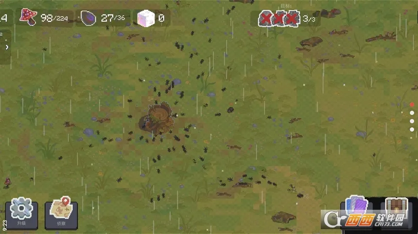 蚁群模拟器2是一款以蚂蚁为主题的策略经营游戏。玩家要管理蚁群,孵化蚂蚁、分配资源扩大蚁穴,探索收集资源,击败昆虫洞穴完成任务。有多种蚂蚁卡牌,像素画风,不同地图有不同机制,玩法有趣易上手。