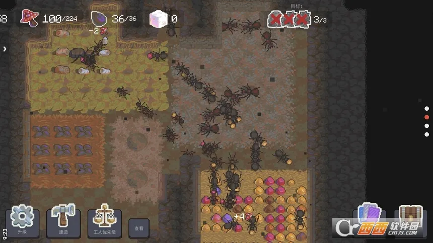 丰富的蚂蚁选择:各种各样的蚂蚁可以去选择解锁,每种蚂蚁都有不同属性,能帮你完成各种工作,为蚁群发展助力。