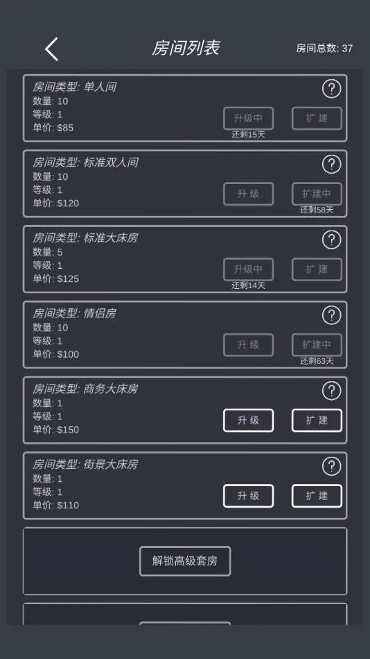2. 丰富升级体系:精致装备体系助升宾馆星级,星级越高收入越高,还有多种装修改变提升豪华度与增效。