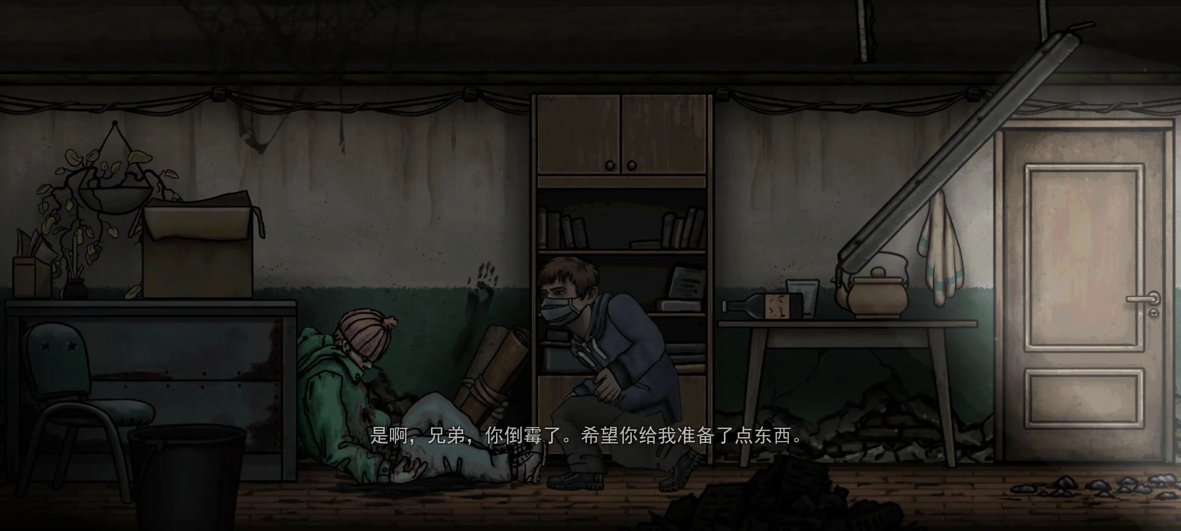 游戏玩法丰富。进入游戏点击新游戏,先过剧情,之后就能操控角色移动、蹲下、跳跃、打开背包。搜索各地可获物资,还能收集物品修复地堡。屏幕上方显示玩家属性,包括血条、饥饿、口渴、能量和辐射。