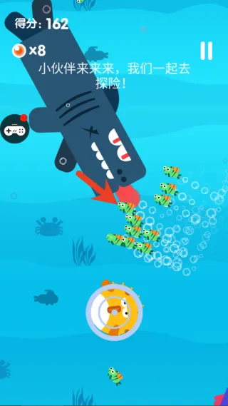 1. 简单易上手的操作:玩家通过手指滑动屏幕,就能轻松控制小青鱼群的移动方向,引领鱼群协同前进,轻松开启海底冒险之旅。