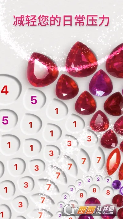 Dazzly绚石工坊是一款休闲解压的小游戏。它玩法简单,玩家只需为绚丽宝石填色,组成美丽钻石画。操作无需技巧且无时间限制,能让人慢慢享受创作过程。