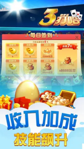 玩法是四人游戏,三人合作对抗庄家,使用两副牌。出牌规则也不难懂,首家出牌后,其余玩家要跟花色,同等大小牌先出者为大等。这里有多种特色玩法,比如湖南当地的湘潭三打哈、岳阳三打哈等,能让你感受原汁原味的地方特色。而且游戏免费,注册升级能拿大量金币,赢牌还有奖品。还有丰富的福利活动、精彩比赛,能满足不同玩家需求。不管你是新手还是高手,都能在这找到适合自己的场次,快来下载体验三打哈的乐趣吧!