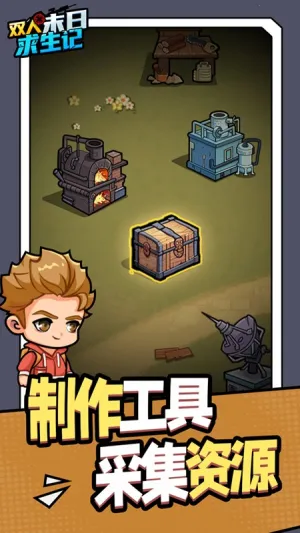 《双人末日求生记2025官方正版》,一款超有趣的双人末日求生手游。卡通画风清新,废土世界紧张刺激。支持好友联机,分工协作超好玩。一人建基地防御种作物,一人外出探索收集资源打僵尸。能选不同天赋角色,造武器工具,探索废弃城市等场景找隐藏任务。双人配合乐趣多多,生存挑战有策略不累,适合休闲玩。赶紧拉朋友下载,一起在末日世界开启求生之旅,感受别样的冒险与协作!