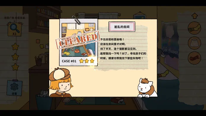 喵侦探咪雅是一款休闲有趣的冒险解谜游戏。在充满手绘风格的温暖世界里,玩家化身资深猫侦探,带领猫咪伙伴穿梭于精致场景,运用道具解开隐藏谜题,通过光影和声响捕捉线索,解锁猫咪日记碎片,揭开城镇失踪事件背后的暖心故事。