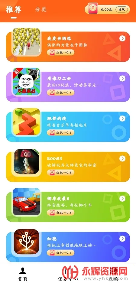其特色众多,即点即玩超省心,从推荐页一键进入游戏,流程短上手快,适合各种碎片时间。分类清晰,能根据标签与评分快速筛选游戏。福利体系丰富,签到、定时领取、玩游戏领幸运值等多种任务入口集中管理,进度直观,奖励获取有节奏。而且榜单推荐双驱动,今日推荐与热门区实时展示高人气作品,猜你喜欢还能根据偏好推送。红包任务可视化,金额倒计时与领取入口清晰。界面清爽操作顺手,卡片式游戏展示,按钮直达打开,适合各年龄段。快来下载小猫快玩免费版,开启轻松快乐的游戏时光吧!