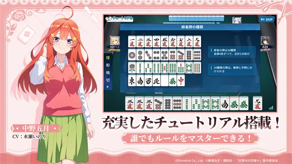 麻雀一番街是一款充满都市风情的线上日本麻将对战手游。免费畅玩正宗日麻,融入现代立直市场元素,有高手过招的段位赛等。众多美少女角色搭配人气声优,可养成雀士,还有丰富更新内容,如与《五等分的新娘》合作等。