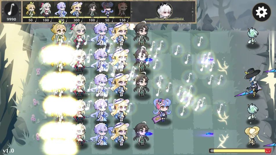 1. 独特玩法,趣味十足:玩家要运用策略布局共鸣者,收集音符能量抵御敌人。初始种植维里奈持续产出音符,空中也会掉落额外资源。共鸣者升级后能解锁更强技能,如柯莱塔升级后可双发射击,集满音符还能释放强大专属技能。