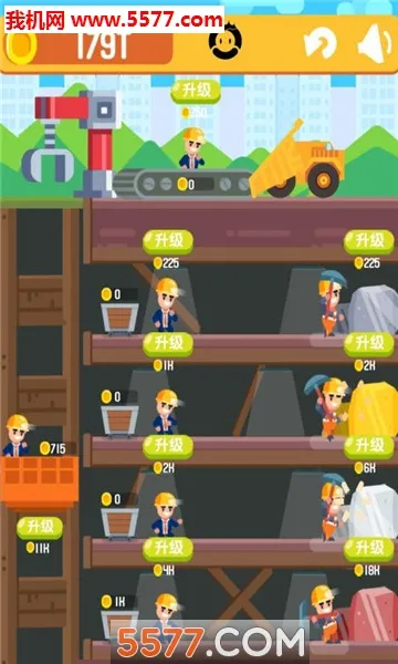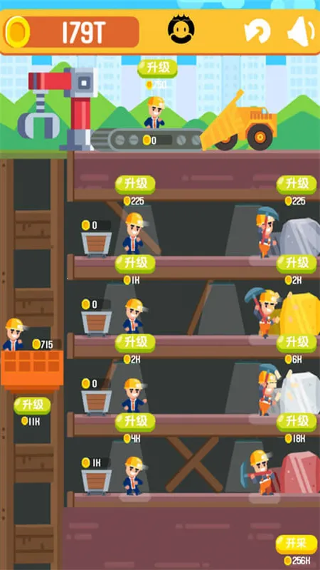 玩法丰富多样,开采、搬运、升降、售卖四大环节环环相扣,支持手动微操与全自动挂机无缝切换。离线也能产金,上线即可收成。还能调配工人、升级钻头、扩建基地,或者点开踩雷挖矿小游戏,随机爆金币并触发彩蛋。