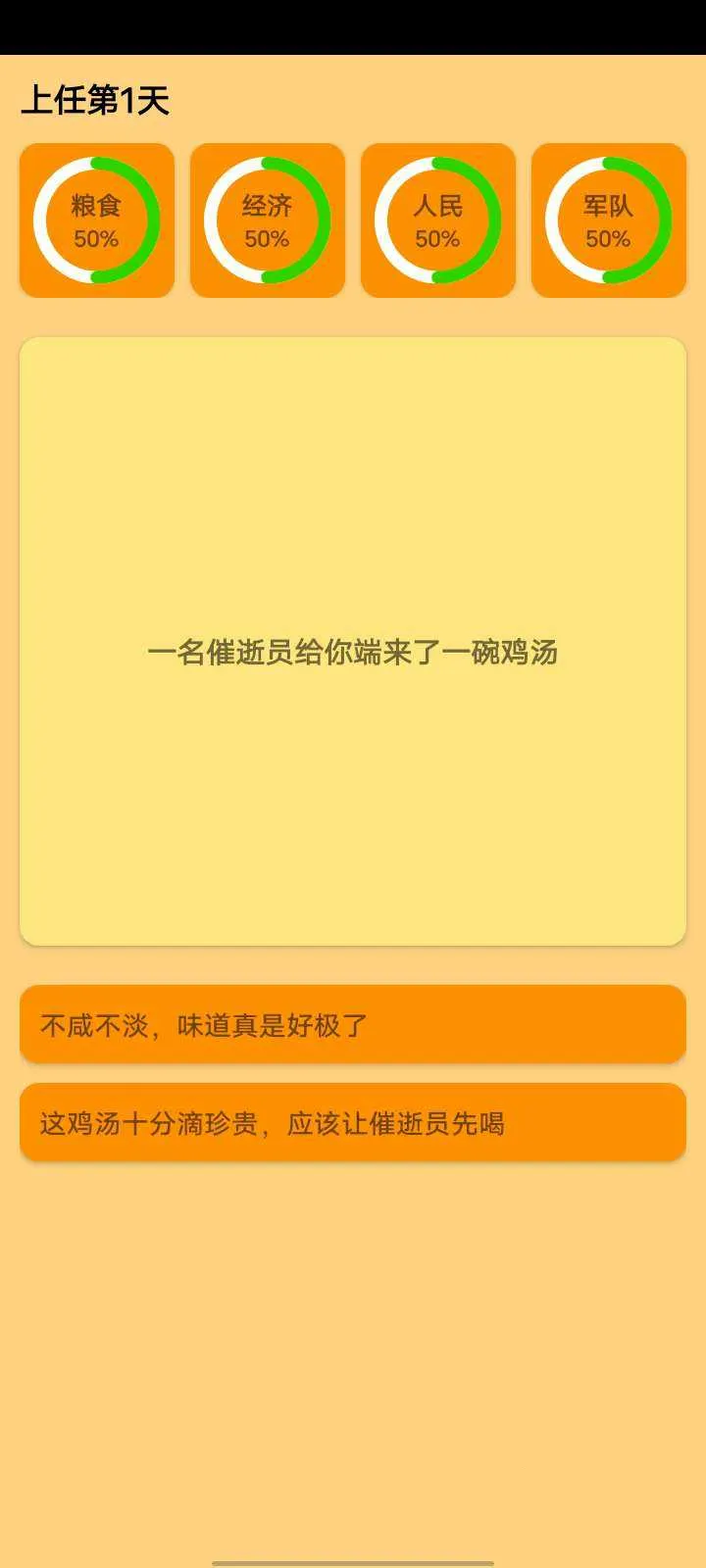 《正经的统治者2026最新版本》是一款脑洞大开的文字策略模拟游戏。玩家扮演实习统治者,权衡人口、治安等核心参数,应对海量随机事件,通过选择定义统治风格,在有限资源中做关键取舍,体验硬核统治。