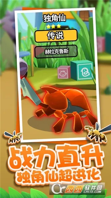 2. 玩家能在微观世界和各类昆虫并肩作战,带领昆虫部队对抗敌人守护汉堡。相同昆虫可合成更高星级个体,还能解锁多种不同种类昆虫扩充队伍,比如实力较强的独角仙升级强化后有多种技能,还可解锁武器战斗。