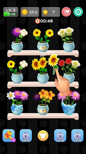 4. 单指滑动即可完成所有花束移动,上手门槛低但精通难度高,满足各类玩家需求,轻松开启消除之旅。