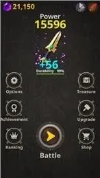 《武器王》是一款休闲冒险养成游戏。玩家要不断提升装备强度与武器伤害倍率,以快速消灭敌人、击败boss。戒指和项链饰品能提供额外属性加成,助力通关。游戏玩法新颖,画面简洁,可让人感受战斗快乐。玩法以点击为主,类似音舞游戏,点击特定图标增加COMBO,注意别点地雷图标。强化是亮点,武器100外强化武器,等级越高成功率越低。武器装备强化是基础,100后解锁多种装备。宝物需大量钻石解锁,戒指增收益,项链加攻击且可叠加。BOSS挑战有狩猎奖励,血量是胜负关键。其特色包括推进关卡掉落装备、玩法简单、关卡设计多样、有宝物系统。亮点有各种装备武器带炫酷技能、玩法多样、装备系统丰富、画面简洁。