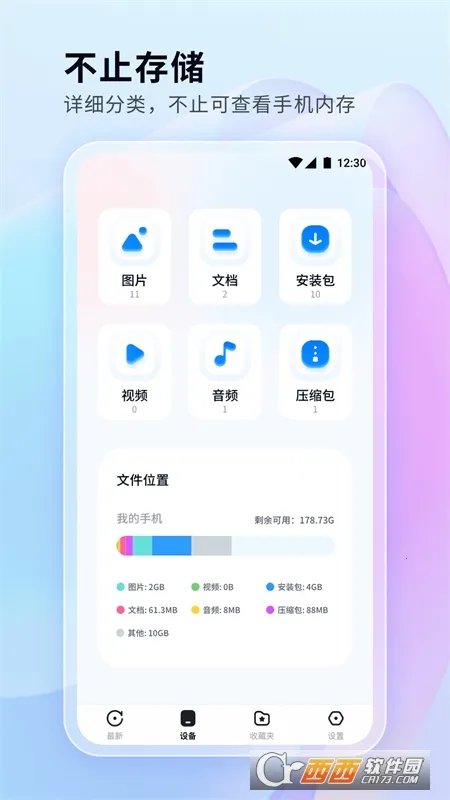 文件管理秘书是一款专注手机文件管理的实用工具。它以安全高效为核心,通过分类管理、快速搜索、收藏锁定等功能,解决文件杂乱查找困难的问题。采用纯本地存储和无网络传输设计,保障数据安全。批量操作和垃圾清理提升用户体验。在设备页面可快速浏览分类文件,下滑能查看存储情况,设置页面可查看相关信息并反馈。界面清晰、功能强大、操作简单、内存合适不卡顿,能帮您高效管理手机文件,快速找到所需,是优化手机存储空间的理想选择。