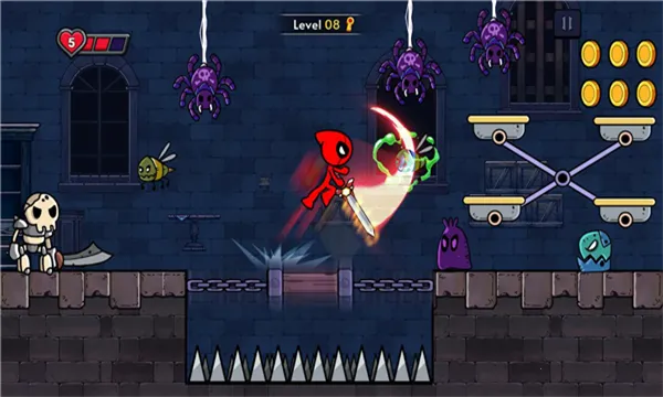 红色火柴人冒险是一款超棒的手游。玩家能开启爽快的冒险之旅,这里关卡众多,趣味十足。操控红色火柴人穿越森林、沙漠、城堡等各种地图,每个关卡都有精心设计的陷阱、障碍和敌人等待挑战。