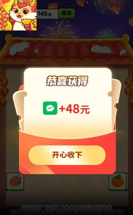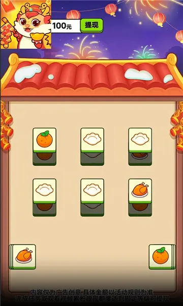 新春大赢家是一款消除赚红包游戏。跟随关卡引导参与消除任务冒险,体验消除乐趣。有多彩玩法模式,经典三消模式可自由选择。特色是有休闲音乐氛围,经典玩法关卡挑战,能感受触屏特性。亮点在于卡通休闲场景画面有绚丽连击效果,操作简单易懂,老少皆宜。参与消除完成任务就能收获红包,轻松赚零花,快来感受这原始的休闲闯关快乐,解锁丰富玩法,开启消除赚红包之旅!