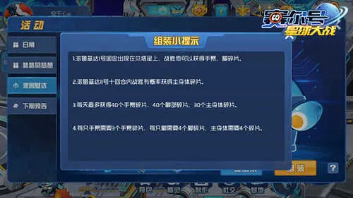 提示:所有碎片每日获取数量有限,但多余碎片可重复用于组装,无需担心浪费。