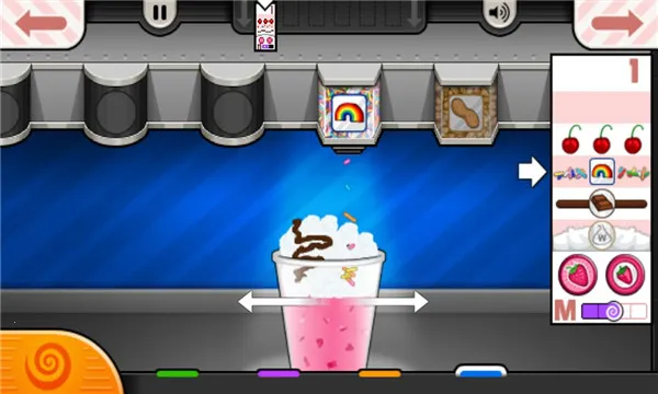 这里有丰富多样的配料供自由搭配,从经典珍珠奶茶到创意水果冰沙,能满足不同顾客口味需求。游戏中,要根据顾客订单制作冷饮,在搅拌或加原料时,于进度条绿色最佳位置点击,可制作出高分冰淇淋,还要注重食物外观装饰。