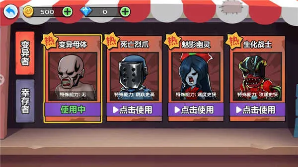 变异者操作简洁:虚拟摇杆控制移动,右侧按钮释放技能(如扑击、毒雾、狂化),长按可蓄力增强效果。注意观察小地图红点,及时定位幸存者位置。