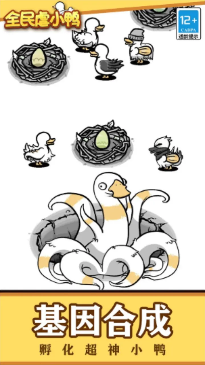3. 能邂逅众多造型搞怪的鸭子,持续收集丰富多样的鸭子品种,还可将鸭子合成升级,孕育外形更奇特怪诞的新品种。
