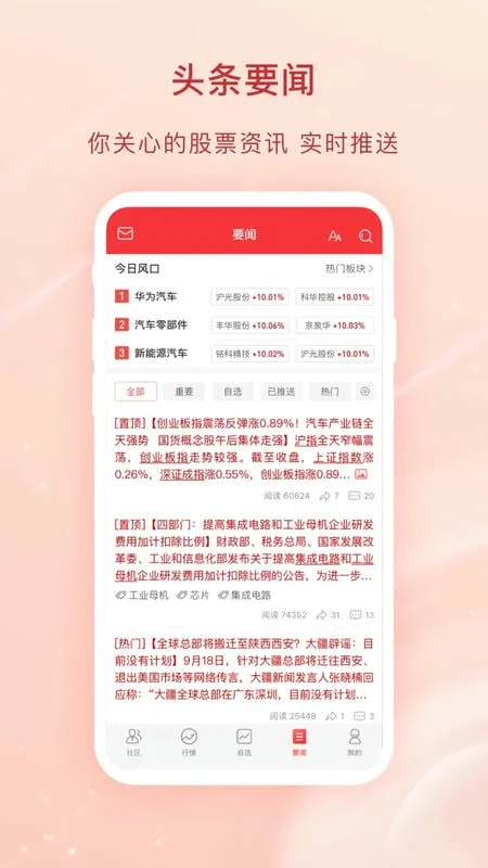 这里汇聚实时行情播报、专家投资建议与强大社群功能。有操盘手和大V盘中直播,为您答疑解惑;能免费查看实战高手投资组合,自建股票池;提供全球行情,还有权威投资内参助您捕获机会。