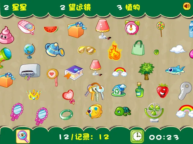 找你妹是一款超有趣的经典益智休闲找茬游戏。它能极大地考验你的观察力与眼力。游戏有着幽默的故事情节,特别增添乐趣。它含丰富模式和道具系统,支持多人联机。结合了找图与RPG元素,能让角色升级获奖励。还有无尽挑战和多人比赛模式,能与全球玩家比拼,最多4人对战,还可互用干扰道具。玩的时候,每个关卡有要求找出的物品,点中符合要求的能增加游戏时间,点错扣除时间长,所以要慎重。物品为2 - 3个时可一起找,拉动屏幕会浪费时间。关卡里有时钟图标,点击能加时间。实在找不到且时间紧迫,可使用左下角眼睛寻找技能。开局或结束前能买道具,道具在关卡中作用很大。众多红人角色任选,每个自带专属技能,巧妙运用可助你赢。总之,这游戏能让你尽情享受找茬的欢乐,还能和朋友一起竞技,特别好玩!
