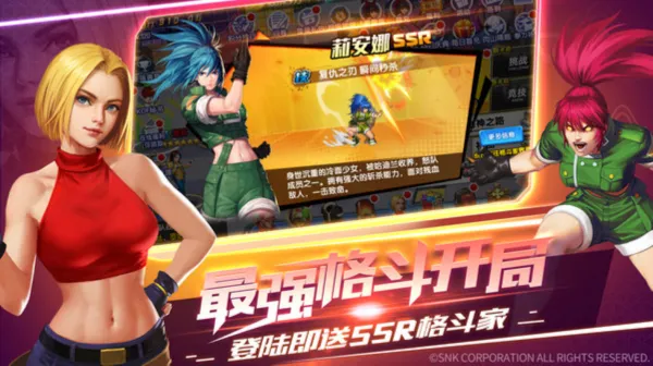 1. 游戏为SNK正版授权,经典IP角色齐聚,像八神庵、草薙京等,完美还原,带你重温街机情怀。