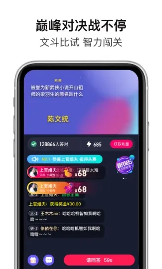 想体验紧张刺激又趣味十足的答题挑战吗?那就来试试超级答人争霸赛吧!它能满足你对知识竞赛的渴望。这是一款直播互动娱乐平台,每天有多场全民趣味互动答题直播。在这儿,全民都能参与,无论你是知识达人还是想轻松娱乐一下,都能找到乐趣。只要答题全对,就能当场平分大奖,奖金丰厚,让你收获满满。而且随时收益秒到账,真正实现知识变财富。它的题库丰富,能让你靠智力闯关,每天都能参与答题,持续挑战自我。还有暑假活动等限时福利,能限时领取能量礼包。软件还优化了广告加载速度,每天能领取更多金币。既能快乐一整天,随手涂鸦、爆笑解谜,又能在玩乐中增加知识,真正做到学习娱乐两不误,是一款很值得推荐的软件!