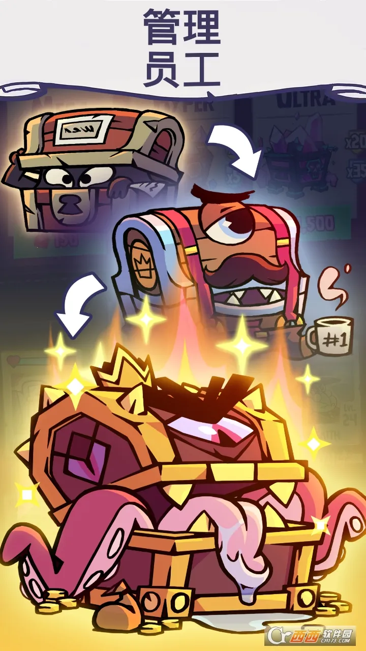 其内核扎实,是强策略型放置经营游戏。金币用于解锁升级,员工需精准配置,战斗可自动也可手动干预。美术风格独树一帜,将哥特式建筑与现代办公元素融合,细节满满。而且游戏设定颠覆性强,业务线魔幻,给玩家带来强烈反差和沉浸体验,非常值得一玩。