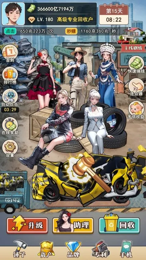 6、点击屏幕敲击垃圾赚钱,也可以在游戏升级自己的力量,可以获取助理