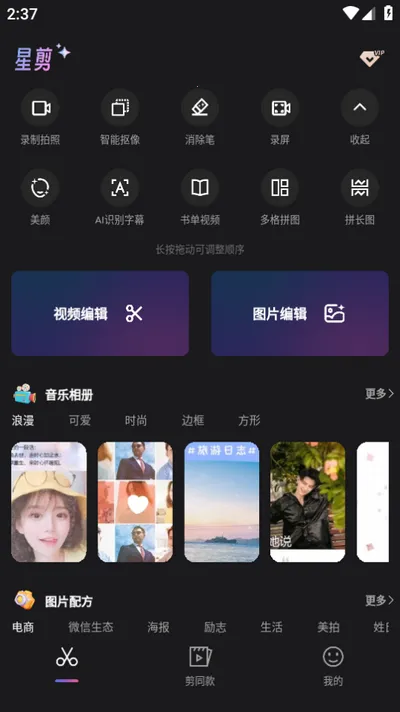 星剪2026官方正版是一款功能丰富的视频剪辑app,支持iOS和安卓系统。有海量视频模板、多种剪辑功能,可聚合视频获取素材,能去字幕、裁剪音频,还能实现视频去重、变速等操作,轻松制作个性视频 。