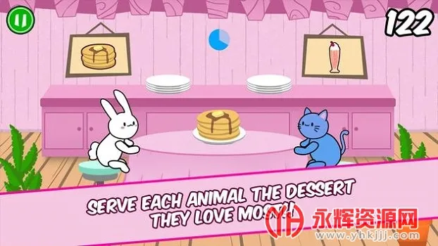 想体验轻松有趣的美食模拟游戏吗?那就来试试这款“煎饼和奶昔”游戏吧!在这里,你将化身美食大厨,亲手调配各式诱人点心喂给可爱的小动物。操作超简单,用手指左右滑动,把合适的食物送给兔子和小猫,它们食量有限,要留意别撑着它们。若出现它们不爱吃的,向上或向下滑动手指丢掉就行。游戏中还有带特殊光效的能量道具,能提升表现,看到要尽快喂给动物们,目标是冲击高分进全球前五排行榜。主菜单的小提示板能查看哪些甜点会让动物兴奋过头,比如松饼、红丝绒蛋糕和甜甜圈,喂食时可得留心。兔子靠食物补充体力,得仔细观察安排喂食节奏,不然任务易失败。画面全是圆滚滚的卡通动物,简单触控操作却很考验反应快慢。关卡设计有趣,餐桌不断出新食物,得快速移动手指准确喂到兔子嘴里,快来享受这场美食投喂之旅吧!