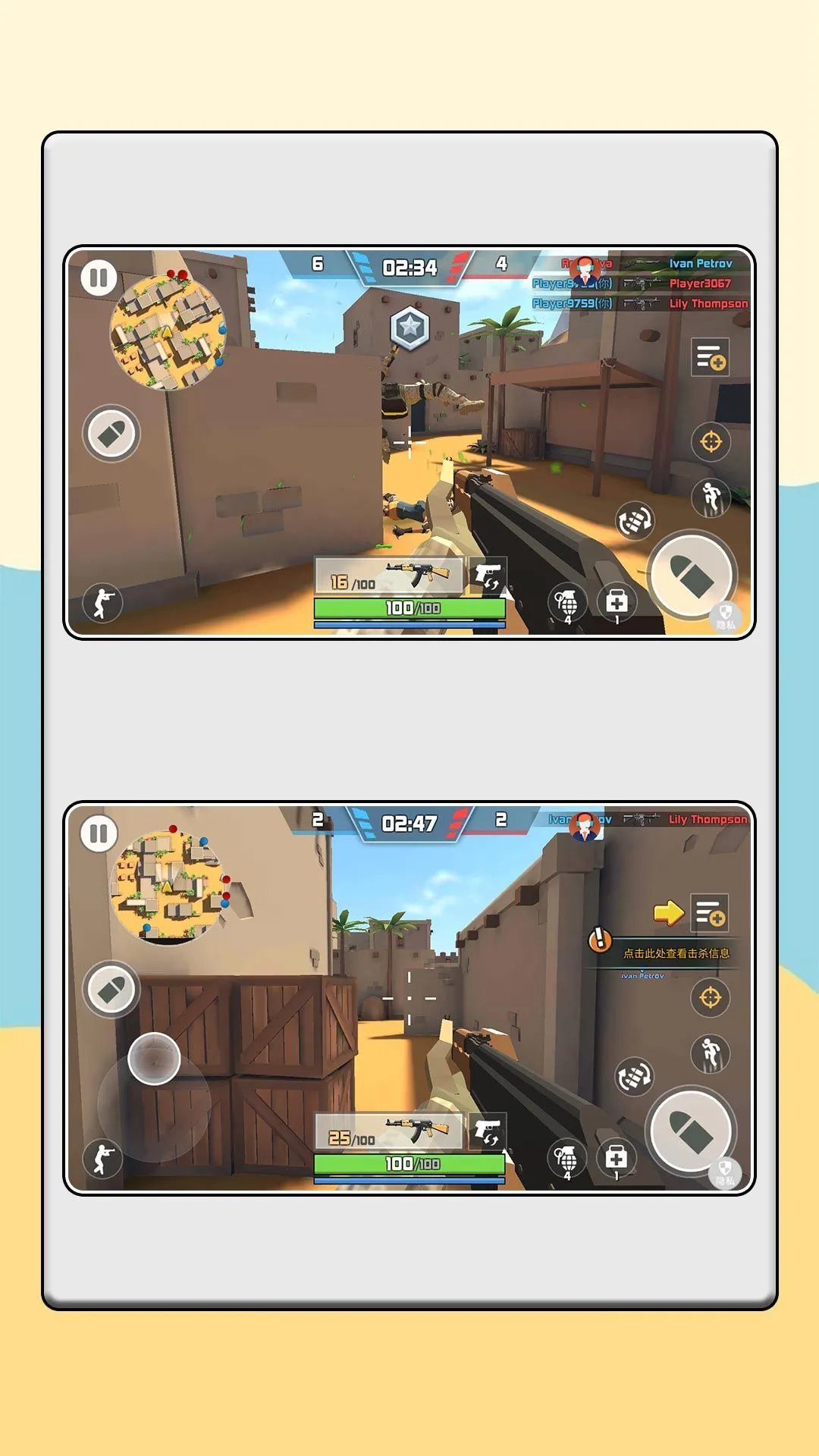 游戏特色丰富多样,提供团队竞技、个人混战、剧情闯关、BOSS 挑战等多种对战模式,适配不同玩家偏好。多样地图场景,如屋顶激斗、沙漠城战、废弃工厂等,地形与战术策略设计差异显著。还有装备升级系统,可强化武器、护具、饰品等。