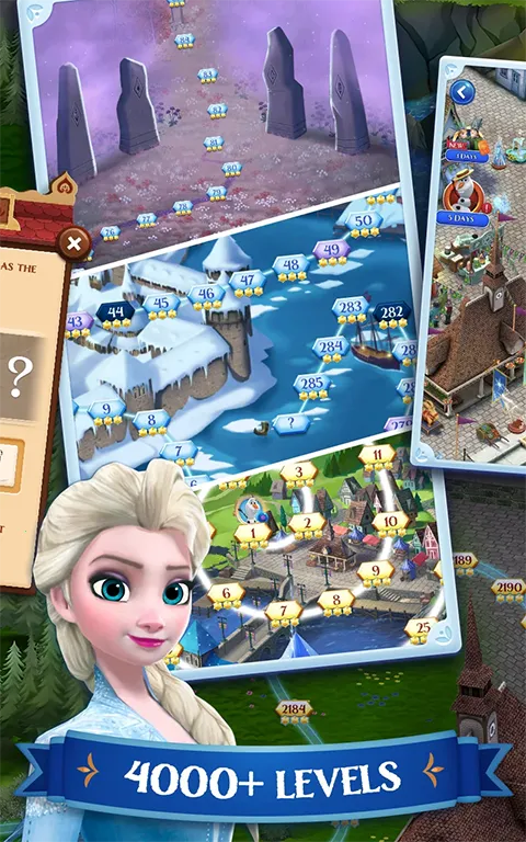 在玩法上,它有多种有趣的过关目标,不只是单纯得分通关。这里有伙伴系统,以小艾莎和安娜开启冒险,随着剧情推进解锁更多电影角色,每个角色还有专属炫酷技能。游戏的消除效果炫丽,点击关卡时载入界面的冰封效果逼真,冰晶碎裂效果超漂亮。而且每季都会推出应景解谜和游戏模式。