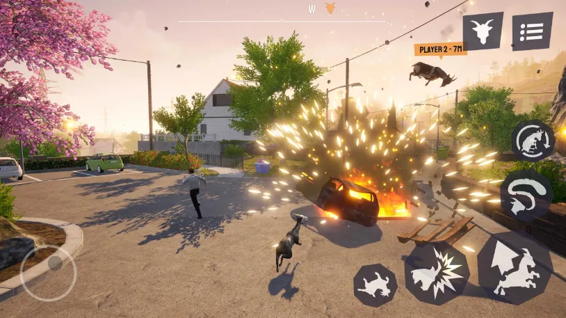 模拟山羊3是休闲动作游戏,能扮演羊羊毁灭世界。有各种山羊,开放世界可探索,能与好友多人联机制造混乱,还有7个小游戏,具布娃娃物理系统,带来与电脑主机版相同的破坏体验。
