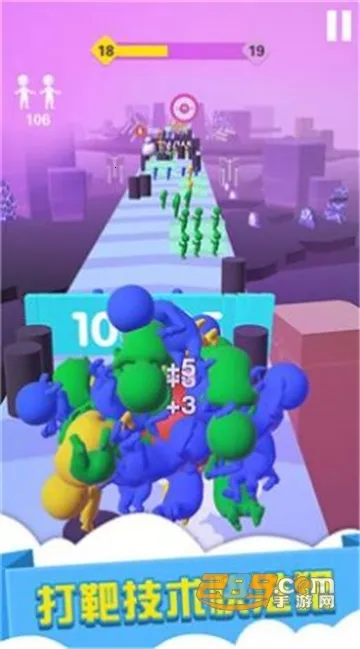 想体验超有趣的休闲跑酷游戏吗?那就来试试酷跑王国手游吧!它能满足你对趣味跑酷的需求。游戏画面精致简约,3D立体效果的小人造型超有特色。玩法简单刺激,开局一个圆球,按住屏幕左右滑动控制前进方向,躲避黑色障碍,黏住火柴人就能不断壮大。这里有海量关卡,每关玩法都不一样,还有合成全新皮肤、解锁炫酷特效技能等玩法,像花式跳板翻腾、奇趣闪电机关、圣诞雪人助跑等,趣味十足。通过移动相应等级的圆球升级,可解锁新圆球,获得外观和属性加成,更好地黏住火柴人拿高分换金币,金币又能买更多圆球。而且离线挂机也能得金币,不玩也能轻松积累。另外还有超多精彩任务等你发现,快来下载,开启这场魔性酷跑之旅吧!