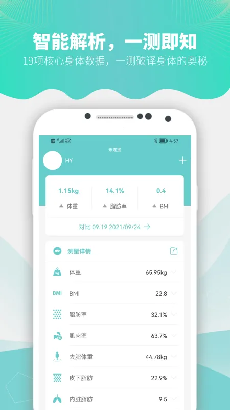 1. 智能解析,数据一目了然:能快速精准地分析出13项核心身体数据,让您对自身健康状况了如指掌。