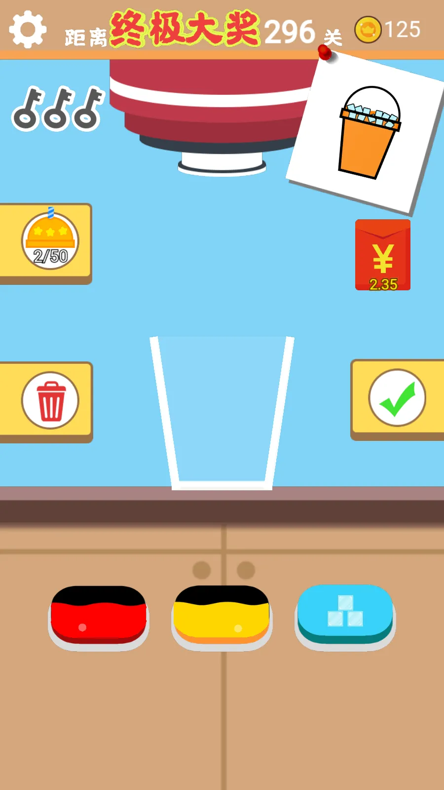 想知道全民做奶茶的攻略秘籍吗?快来试试全民做奶茶红包版这款超有趣的模拟经营游戏!在这里,你将经营一家专属奶茶店。游戏有多种玩法,比如订单式奶茶制作,接收顾客订单后,按需求依次选茶底、加配料、调甜度冰量,再摇晃混合,最后选杯身杯盖完成出品。还能进行店铺升级与管理,用收益解锁高品质原料、升级设备、招募店员。更有创意配方研发模式,可尝试各种新奇搭配,打造独家招牌饮品。开局按要求将红蓝色液体各 50 倒入杯中调出目标颜色确认即可进入下一关。它画面清新,玩法轻松,每天能领奖励道具,接受各种挑战订单,制作不同奶茶,乐趣十足,让你尽情享受经营奶茶店、制作美味奶茶的快乐,轻松解决你想了解奶茶制作攻略的需求!