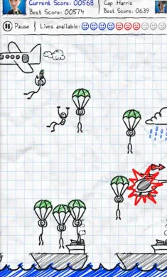 跳伞惊魂是一款冒险游戏,引导跳伞员安全登船,过程中要小心直升机、鲨鱼、雷云及 UFO。游戏有手绘笔记本风格与漫画动画,音效有趣,无伴奏合唱朗朗上口,随时能畅玩,制作团队很享受创作过程。