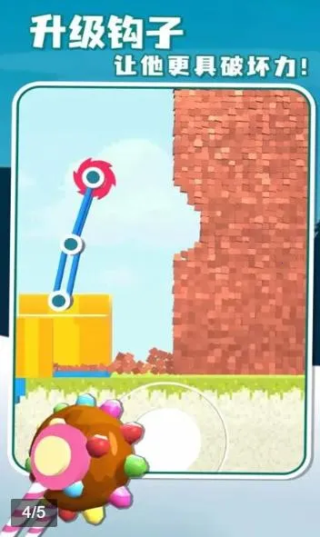 4. 游戏操作简单,撞碎物品后可拿到奖励,还能升级钩子,使其钩得更远且破坏力更强。