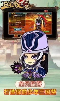 《三国演义之天策》是一款三国题材休闲卡牌手游。它构建了充满乐趣与挑战的三国世界,玩法丰富。有24小时挂机升级,回合制策略战斗需巧妙搭配武将阵容。丰富任务系统,多样活动玩法。云集众多三国名将,养成系统丰富,主公光环、将星升级等全方位提升实力。采用Q版卡通画风,技能特效独特。新版特性超诱人,上线领丰厚物资,开服福利多,充值折扣低,能轻松打造无敌阵容,快叫上好友来体验这热血的三国征战!